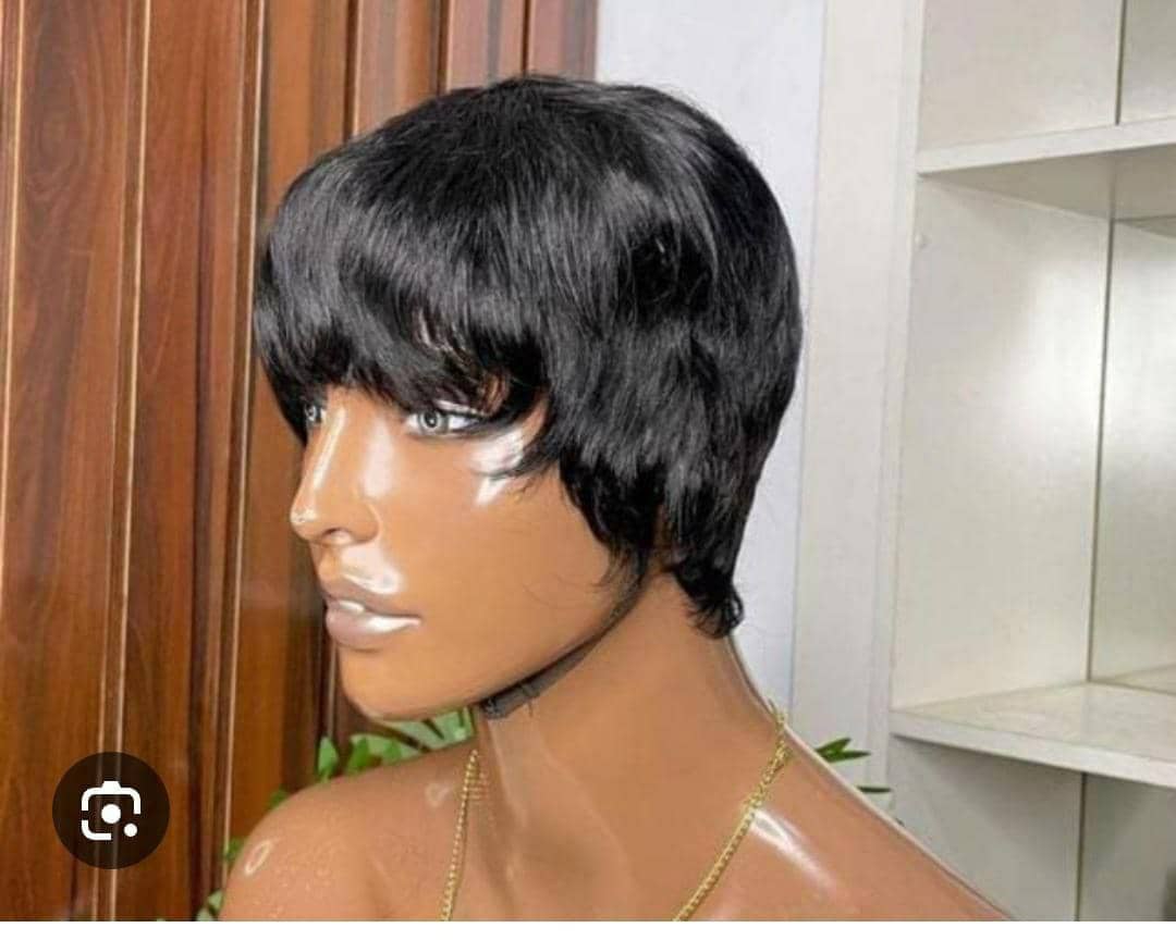 This wig is styled in a sleek, short bob with a side part. The hair is smooth and shiny, with a gentle curve inward at the ends. The classic cut and polished finish make it a versatile and timeless choice.