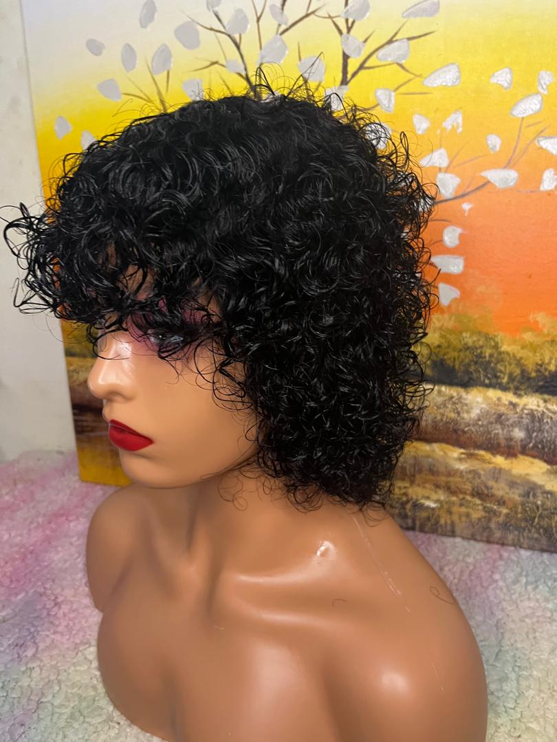 This short afro wig features tight, coiled curls that form a rounded, voluminous shape. The look is bold, chic, and perfect for natural hair lovers or anyone wanting to embrace a retro aesthetic. Its texture is thick and fluffy, offering a full and confident appearance. Best styled by picking out the curls gently or shaping with your hands for desired volume. It requires minimal manipulation and looks stunning with statement earrings or bold makeup. Use curl cream to keep the curls defined and frizz-free. Perfect for both everyday wear and standout moments.